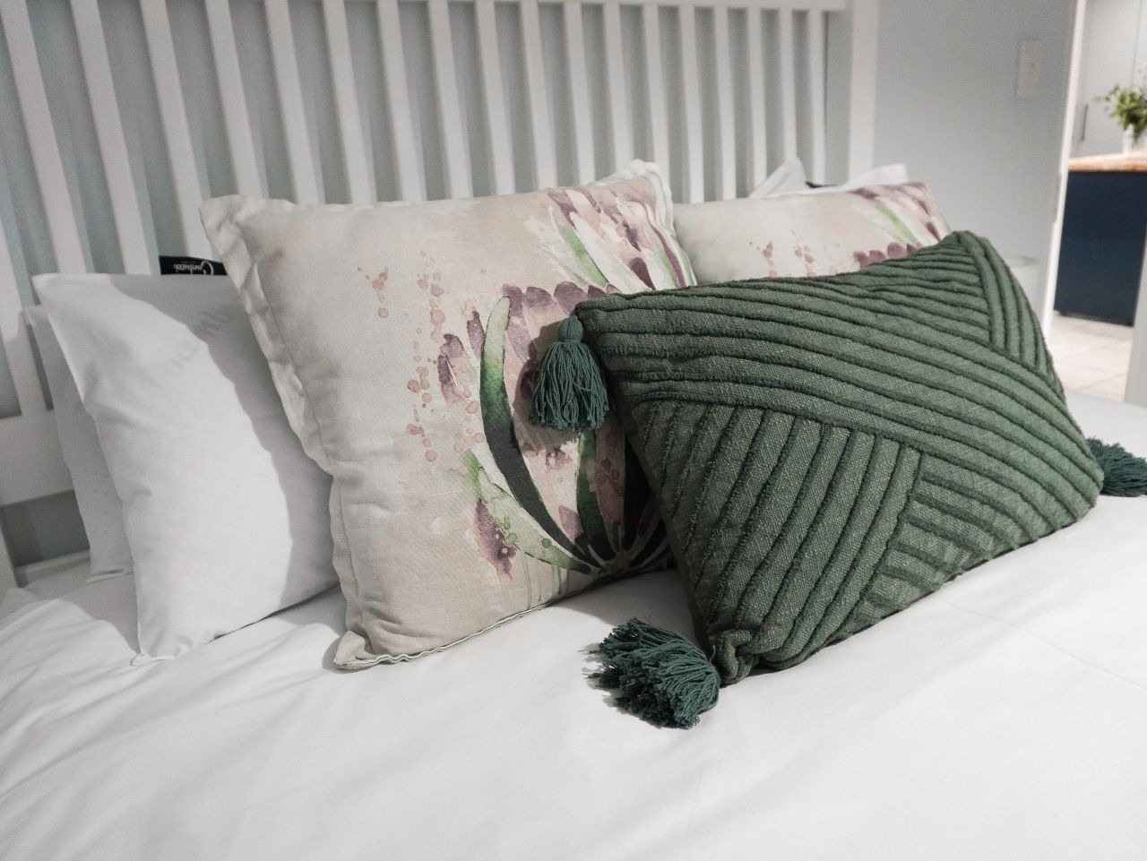 The main bedroom features a queen-size bed and a private en-suite bathroom, while the second bedroom includes two comfortable ¾ beds — perfect for kids, teens, or extra guests sleeping a total of 4 people. A fully equipped kitchen and cozy living space make it easy to settle in and feel right at home.